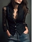 نسائي قميص بلوزة قمصان الدانتيل Buttons سهل أنيق كلاسيكي كاجوال كم طويل V رقبة قمصان عادية مناسب للبس اليومي مناسب للعطلات مناسب للخارج أسود الربيع الخريف