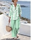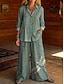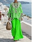 نسائي قميص بلوزة بنطال واسع الساق كم طويل قبعة القميص سهل طباعة موضة أناقة الشارع يوميا فضفاض مناسب للبس اليومي أخضر ربيع & الصيف عادي