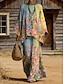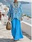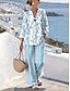 نسائي مجموعات السراويل بوليرو 3/4 الكم رقبة دائرية ظل الرسم طباعة موضة أناقة الشارع فضفاض مناسب للبس اليومي الأماكن المفتوحة أزرق الصيف فضفاض صالح