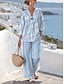 نسائي طقم من قطعتين مجموعات السراويل كم طويل قبعة القميص مخطط طباعة موضة يوميا المكتب أزرق أسود رمادي الصيف عادي