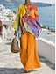 نسائي مجموعات السراويل بوليرو 3/4 الكم رقبة دائرية ظل الرسم مصنع طباعة موضة أناقة الشارع فضفاض مناسب للبس اليومي الأماكن المفتوحة أصفر الصيف فضفاض صالح