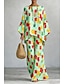 نسائي مجموعات السراويل كم طويل رقبة دائرية الرسم هندسي طباعة موضة أناقة الشارع فضفاض مناسب للبس اليومي الأماكن المفتوحة أبيض أصفر أخضر الصيف فضفاض صالح