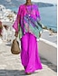 نسائي مجموعات السراويل كم طويل رقبة دائرية ورد الرسم طباعة موضة أناقة الشارع فضفاض مناسب للبس اليومي الأماكن المفتوحة أرجواني أخضر رمادي الصيف فضفاض صالح
