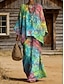 نسائي مجموعات السراويل 3/4 الكم رقبة دائرية الرسم هندسي طباعة موضة أناقة الشارع فضفاض مناسب للبس اليومي الأماكن المفتوحة أزرق أحمر أخضر الصيف فضفاض صالح