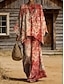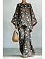 نسائي مجموعات السراويل بوليرو 3/4 الكم رقبة دائرية ظل الرسم طباعة موضة أناقة الشارع فضفاض مناسب للبس اليومي الأماكن المفتوحة بني للربيع والصيف فضفاض صالح