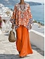 نسائي مجموعات السراويل بوليرو 3/4 الكم رقبة دائرية ظل الرسم طباعة موضة أناقة الشارع فضفاض مناسب للبس اليومي الأماكن المفتوحة برتقالي الصيف فضفاض صالح