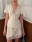 نسائي طقم من قطعتين مجموعات التنورة كم قصير V رقبة سهل دانتيل موضة أناقة الشارع فضفاض مناسب للبس اليومي الأماكن المفتوحة أسود أبيض أصفر الصيف عادي