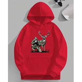 للصبيان 3D أيل هوديي كم طويل الربيع الخريف موضة أناقة الشارع أطفال 4-12 سنة مع قبعة الأماكن المفتوحة فضفاض مناسب للبس اليومي عادي