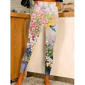 نسائي سراويل طماق بنطال ضيق مريح أناقة الشارع كاجوال مكتمل الطول خصر عالي ورد شريط مرونة الخصر طباعة التنفس إمكانية مريح قابل للبسط عطلة شارع مناسب للبس اليومي أبيض أصفر أزرق أرجواني