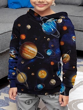 للصبيان 3D كواكب هوديي كم طويل طباعة ثلاثية الأبعاد الخريف الشتاء نشيط أساسي أطفال 2-12 سنة الأماكن المفتوحة مناسب للبس اليومي داخلي
