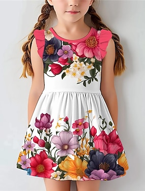 عيد الفصح الفتيات 3D ورد فستان الكشكشة زهري بدون كم طباعة ثلاثية الأبعاد الصيف مناسب للبس اليومي مناسب للعطلات كاجوال جميل أطفال 3-12 سنة لباس غير رسمي فستان تصميم تانك فوق الركبة عادي