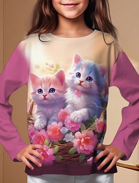 للفتيات 3D الرسم كارتون قطة تي شيرت كنزة مطبوعة كم طويل طباعة ثلاثية الأبعاد الخريف الشتاء نشيط موضة لطيف بوليستر أطفال 3-12 سنة الأماكن المفتوحة فضفاض مناسب للبس اليومي عادي