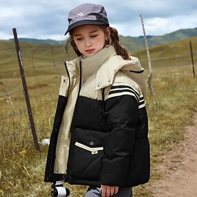 أطفال للفتيات سترة أسفل سترة خارجية سترة البخاخ شريط موضة الدفء ضد الرياح الأماكن المفتوحة معطف ملابس خارجية 4-12 سنة الخريف أسود نبيذ كوفي