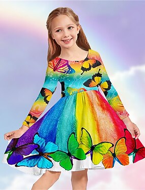 أطفال للفتيات فستان حيوان قوس قزح فراشة كم طويل فضفاض كرونيك بديع يوميا بوليستر فوق الركبة لباس غير رسمي فستان سوينج فستان شكل حرف A الخريف الشتاء 3-10 سنوات متعدد اللون
