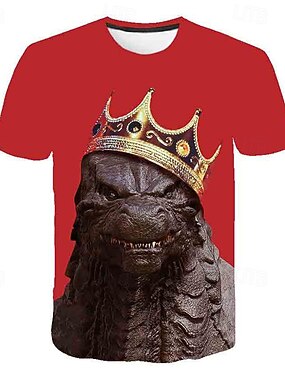 للصبيان 3D حيوان ديناصور تي شيرت كنزة مطبوعة كم قصير الصيف الربيع موضة أساسي أطفال 4-12 سنة رقبة العمل الأماكن المفتوحة فضفاض مناسب للبس اليومي عادي