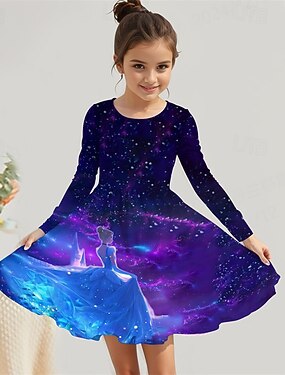 الفتيات 3D الرسم حورية البحر فستان كم طويل الصيف الربيع عطلة مناسب للبس اليومي مناسب للعطلات أميرة جميل حلو أطفال 4-12 سنة لباس غير رسمي فستان شكل حرف A طول الركبة عادي