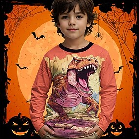 عيد الرعب للصبيان 3D كارتون ديناصور تي شيرت كنزة مطبوعة كم طويل الربيع الخريف موضة أساسي أطفال 4-12 سنة رقبة العمل الأماكن المفتوحة فضفاض مناسب للبس اليومي عادي