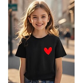 للفتيات 3D قلب تي شيرت كنزة مطبوعة كم قصير الصيف الربيع موضة أساسي أطفال 4-12 سنة رقبة العمل الأماكن المفتوحة فضفاض مناسب للبس اليومي عادي