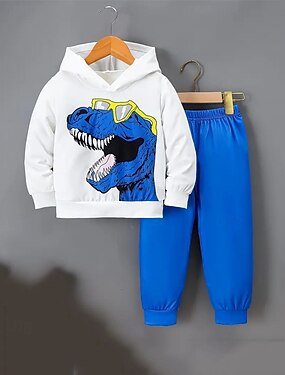 2 قطعتين أطفال للصبيان هودي وبنطلون ملابس حيوان ديناصور كم طويل تعيين فضفاض كوول يوميا الشتاء الخريف 7-13 سنة أسود أزرق برتقالي