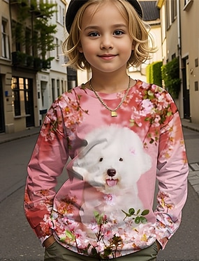 للصبيان 3D ورد كلب تي شيرت كنزة مطبوعة كم طويل الربيع الخريف موضة أساسي أطفال 4-12 سنة رقبة العمل الأماكن المفتوحة فضفاض مناسب للبس اليومي عادي