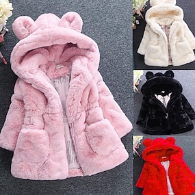 أطفال للفتيات معطف فرو صناعي لون الصلبة لطيف بقع مدرسة معطف ملابس خارجية 4 سنوات + الخريف أسود وردي بلاشيهغ أحمر
