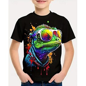 للصبيان 3D حيوان ديناصور تي شيرت كنزة مطبوعة كم قصير الصيف الربيع موضة أساسي أطفال 4-12 سنة رقبة العمل الأماكن المفتوحة فضفاض مناسب للبس اليومي عادي