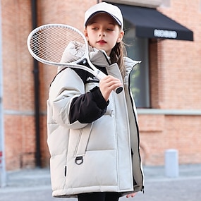 أطفال للفتيات سترة أسفل سترة خارجية سترة البخاخ ألوان متناوبة موضة الدفء ضد الرياح الأماكن المفتوحة معطف ملابس خارجية 4-12 سنة الخريف وردي بلاشيهغ البيج