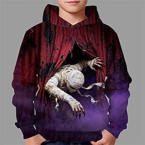 عيد الرعب للصبيان 3D جماجم هوديي كم طويل الربيع الخريف موضة أناقة الشارع أطفال 4-12 سنة مع قبعة الأماكن المفتوحة فضفاض مناسب للبس اليومي عادي
