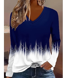 نسائي تي شيرت ظل الرسم مجرد عتيق أنيق كلاسيكي كم طويل V رقبة قمصان عادية مناسب للبس اليومي طباعة أزرق البحرية الربيع الخريف الشتاء