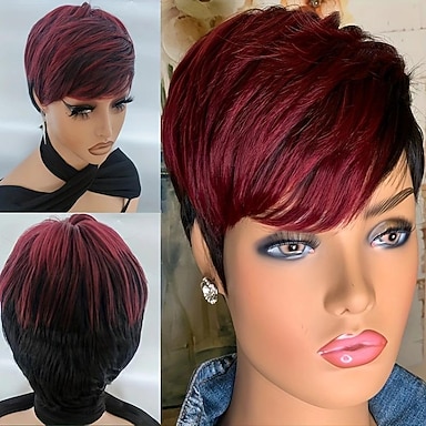 باروكة شعر مستعار أنيقة مستقيمة باللون الأحمر للنساء - قطعة شعر مقطوعة بدون غراء للشعر القصير