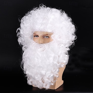 مجموعة لحية وشعر مستعار لسانتا كلوز، لحية بيضاء وشعر مستعار، شعر مستعار مجعد لعيد الميلاد للرجال