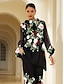 جمبسوت نسائي أسود من الشيفون المطبوع بساق واسعة ورقبة على شكل حرف V وحزام خصر أنيق ومميز لضيوف حفل الزفاف والعطلات اليومية والربيع والصيف والخريف
