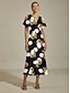فستان ماكسي نسائي أسود أبيض بأكمام قصيرة ورقبة على شكل حرف V أنيق كاجوال يومي للعطلات الربيع والصيف