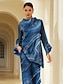 نسائي انثى قميص غير رسمي مجرد فضفاض أسقف أزرق كم طويل أنيق بوهيميا العطلة قبعة القميص الصيف