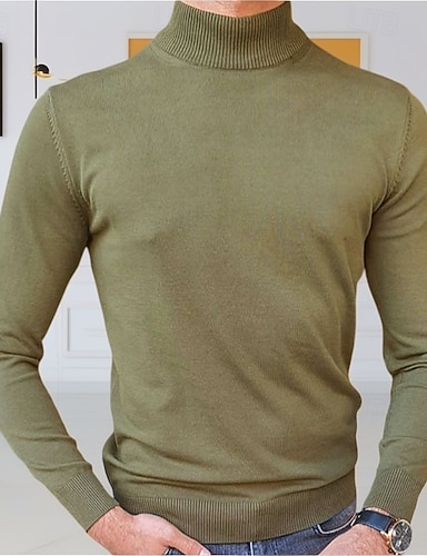 رجالي سترة كنزة صوفية مضلع متماسكة قمصان عادية محبوك قياس نحيف سهل رقبة عالية تريكو معاصر فضفاض مناسب للبس اليومي ملابس الخريف خضار العسكري M L XL