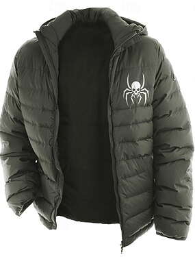 رجالي جماجم SPIDER طباعة معطف شتوي أسفل سترة البخاخ الدفء مكتشف الأمطار خفة الوزن كاجوال الأماكن المفتوحة مناسب للبس اليومي سترة مبطنة بغطاء رأس الخريف الشتاء مع قبعة كم طويل أسود أحمر أزرق ملكي