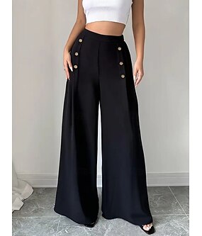 نسائي صفيق أنيق كاجوال يومي مكتمل الطول خصر عالي غير مطاطي المكتب فضفاض مناسب للبس اليومي أسود الصيف الربيع الخريف عادي