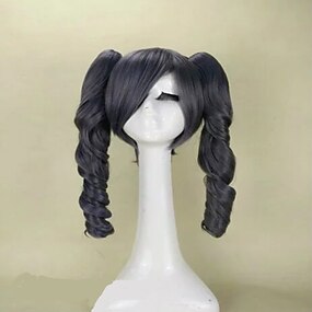 شعر مستعار طويل أسود مربوط للفتيات للفتيات اللطيفات لشعر الهالوين الناعم