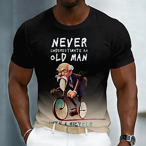 لا تستهين أبدًا برجل عجوز على دراجة هوائية. تي شيرت رجالي مرح بتصميم كرتوني ثلاثي الأبعاد، بأكمام قصيرة ورقبة دائرية، بلون أزرق مخضر متدرج، مناسب للإطلالات الكاجوال. متوفر بمقاسات S، M، L، XL، XX.