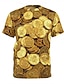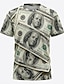 رجالي 3D طباعة 3D نقود تي شيرت كم قصير تي شيرت طباعة ثلاثية الأبعاد رقبة عالية مدورة قميص مبالغ فيه مصمم مناسب للبس اليومي نادي مناسب للحفلات أسود أبيض ذهبي الصيف الربيع كل الفصول ملابس S M L XL XXL