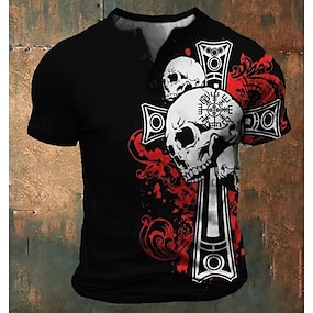 رجالي Halloween فرسان الهيكل صليب قميص هينلي تي شيرت تي طباعة ثلاثية الأبعاد قوطي ثقافة فرعية عطلة مناسب للبس اليومي مناسب للخارج للربيع والصيف أبيض وأسود أسود أحمر هينلي تي شيرت هنلي