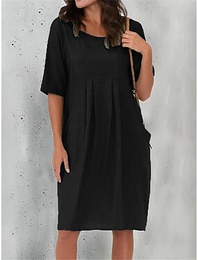 نسائي أسود أزرق رمادي الصيف الربيع فستان ميدي فساتين من القطن والكتان لباس غير رسمي فستان قطن صيفي أساسي الحديث مناسب للبس اليومي عطلة نهاية الاسبوع فضفاض صالح سهل انقسام العنق