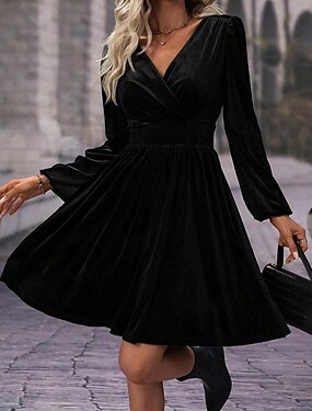 نسائي فستان قصير اللباس المخملية فستان الشتاء فستان كوكتيل موضة الحديث حفلة ليلية عطلة نهاية الاسبوع عادي سهل كم طويل V رقبة أسود أحمر أخضر الصيف