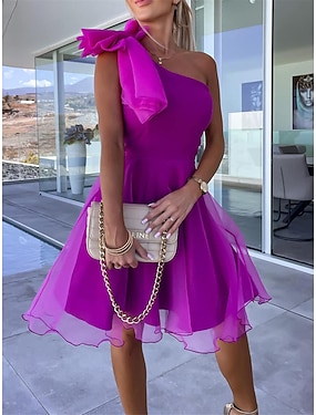 نسائي فستان قصير لباس غير رسمي فستان كوكتيل فستان زفاف ضيف فستان من الشيفون أناقة الشارع كاجوال عطلة شارع مناسب للعطلات عادي بدون كم كتف واحد أسود أحمر أرجواني أخضر الصيف