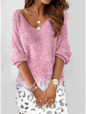 نسائي فستان قصير لباس غير رسمي فستان الشتاء فستان شيفت فستان مطبوع موضة الحديث مناسب للبس اليومي شاطئ عطلة نهاية الاسبوع عادي جلد نمر كم طويل V رقبة وردي بلاشيهغ الصيف الربيع الخريف فصل الخريف
