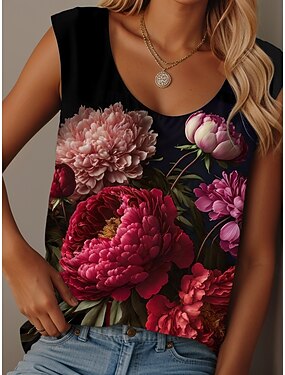 نسائي كنزة ورد الرسم عتيق استوائي يوميا بدون كم بلا أكمام رقبة عالية مدورة قمصان عادية مناسب للبس اليومي مناسب للعطلات مناسب للخارج أسود أخضر فاتح وردي بلاشيهغ أزرق برتقالي الصيف الربيع
