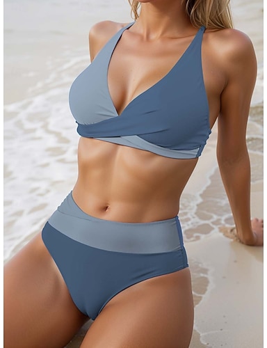 بكيني النساء بيكيني متباين اللون ملابس السباحة بلون صلب أنيقة موضة ملابس السباحة