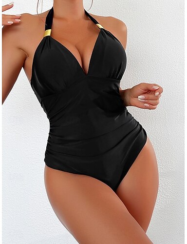 نسائي ملابس السباحة قطعة واحدة ملابس البحر ملابس السباحة بدون ظهر بنطلون رياضي للبطن عالي الخصر ضعيف العطلة ملابس الشاطئ لون الصلبة الرقبة الرسن بدون كم بدلة سباحة
