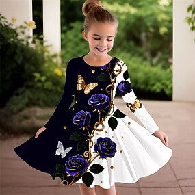 الفتيات 3D الرسم فستان كم طويل طباعة ثلاثية الأبعاد الربيع الخريف عطلة مناسب للبس اليومي مناسب للعطلات لطيف كاجوال حلو أطفال 3-10 سنوات فستان سوينج فستان شكل حرف A فوق الركبة عادي