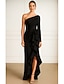 فستان سهرة بحمالة سوداء أنيق فستان رسمي لضيوف الزفاف بطول الأرض بدون أكمام على كتف واحد فستان ساتان مطاطي مع طيات